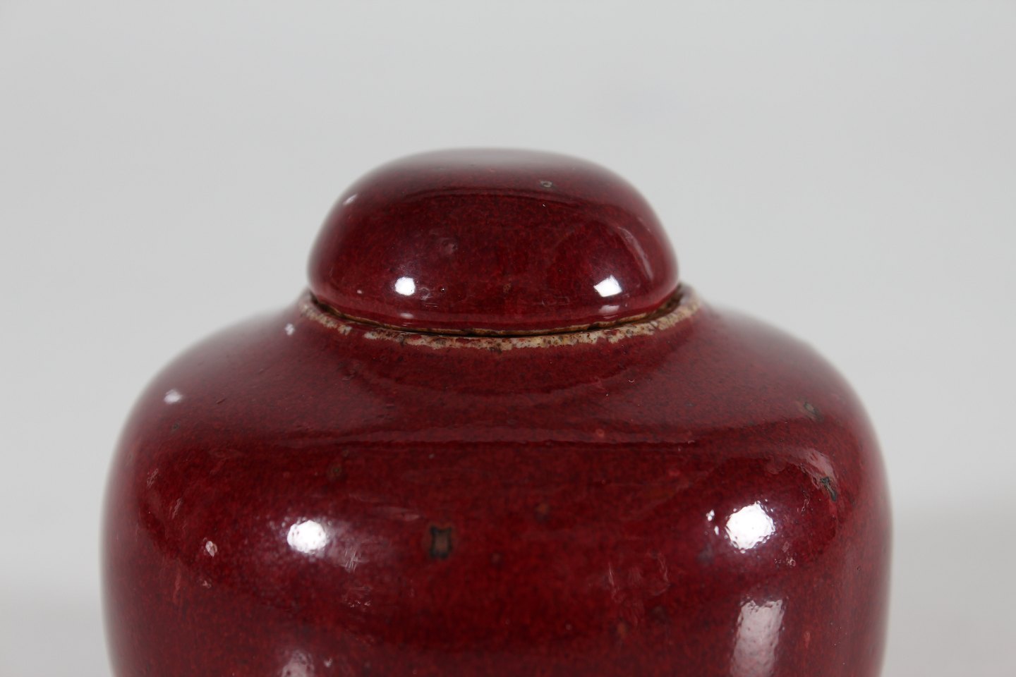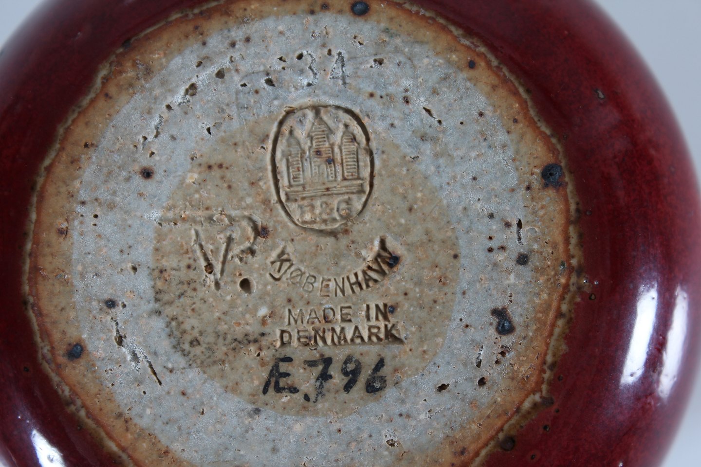 Bing & Grøndahl Valdemar Pedersen (1906-81) Sjælden ganske lille bojan af stentøj dekoreret med okseblodsglasur Med stempel fra 1950'erne Højde 8 cm Diameter 9 cm Fin fejlfri 1. sortering