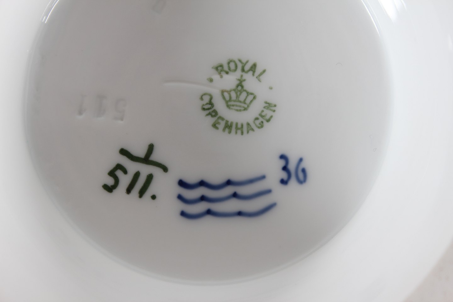 Royal Copenhagen Musselmalet Halvblonde Antik lav kageopsats m/svungen og takket kant model nr. 1/511 Fin vellykket dekoration med stempel fra perioden 1894-1923 Diameter 17 cm Højde 5,5 cm Fin fejlfri 1. sortering