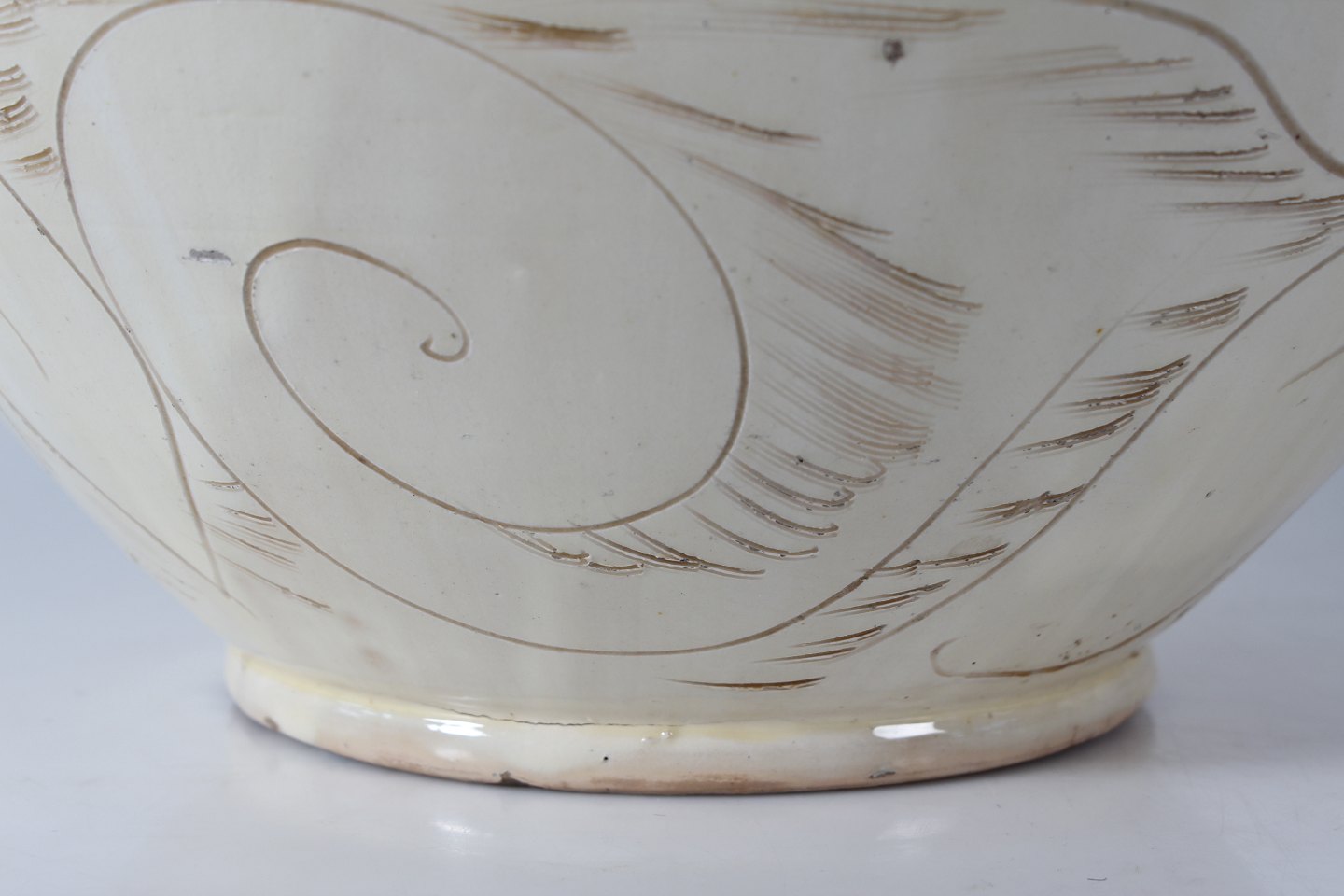 Herman A. Kähler Stor gulvvase med sgrafitto dekoration tilskrevet Julie Kabell Sign. HAK for Herman A Kähler Højde 49 cm Diameter 35 cm Fin stand - se billeder af små glasurafslag samt gl. afslag på bunden