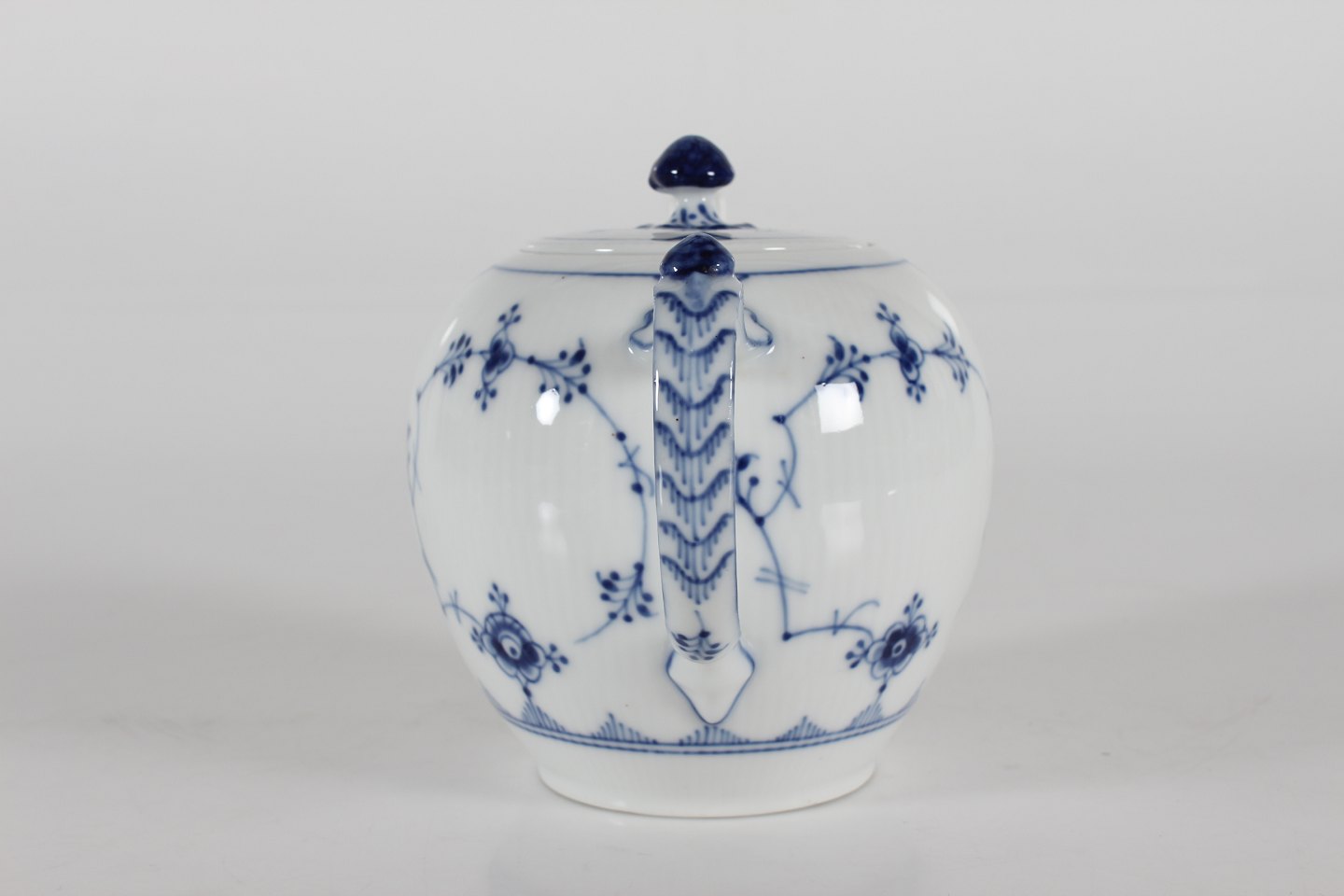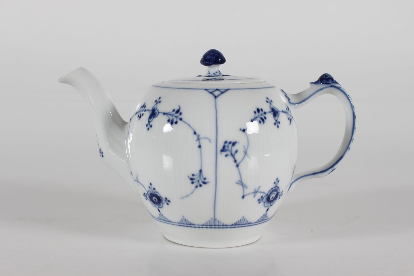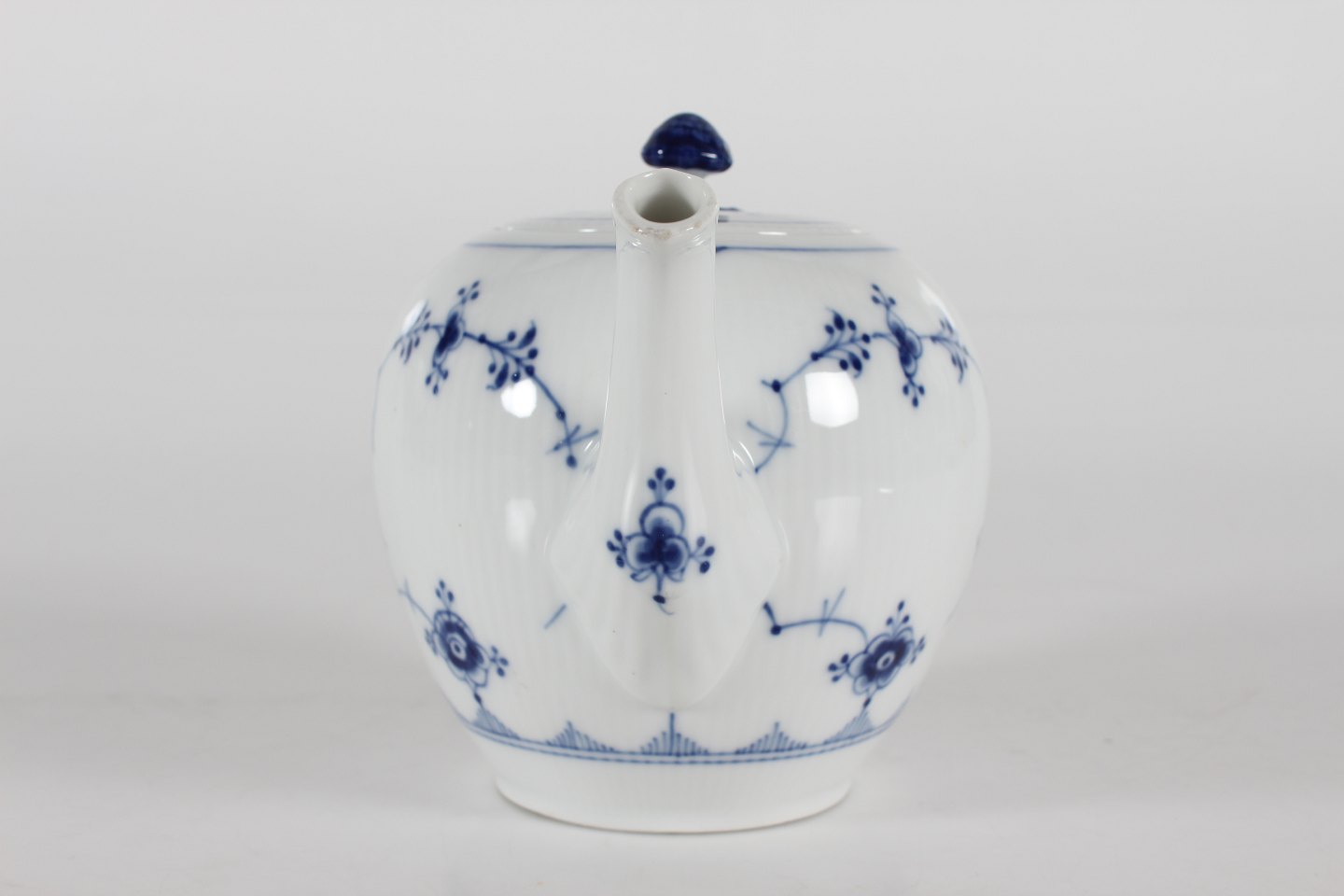Royal Copenhagen Musselmalet Riflet Thekande model 1/259 Med stempel fra perioden 1894-1922 Højde 15 cm Indeholder: 1 L Fin fejlfri 1. sortering