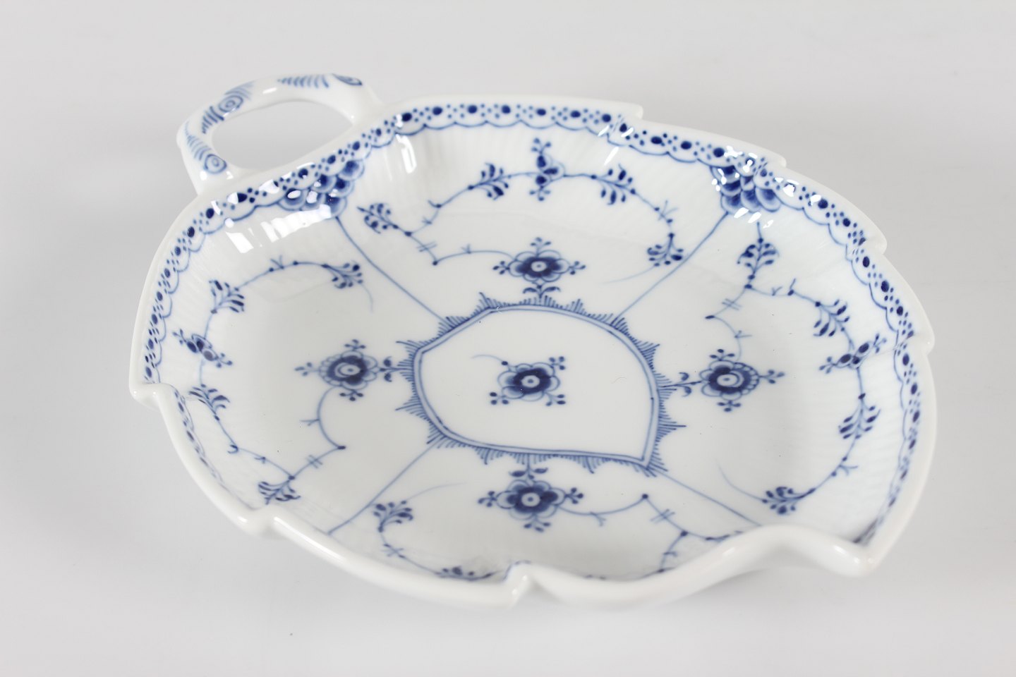 Royal Copenhagen Musselmalet Halvblonde Bladformet serveringsfad nr. 1/549 med stempel fra perioden 1923-34 Længde 26,5 cm Bredde 20 cm 1. sortering fin stand uden skår