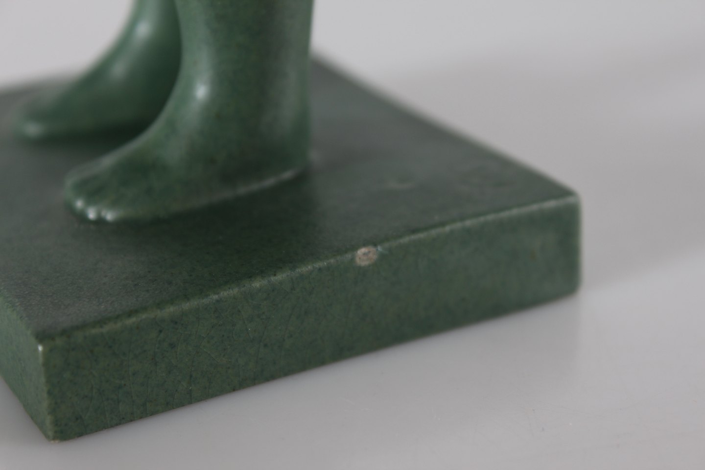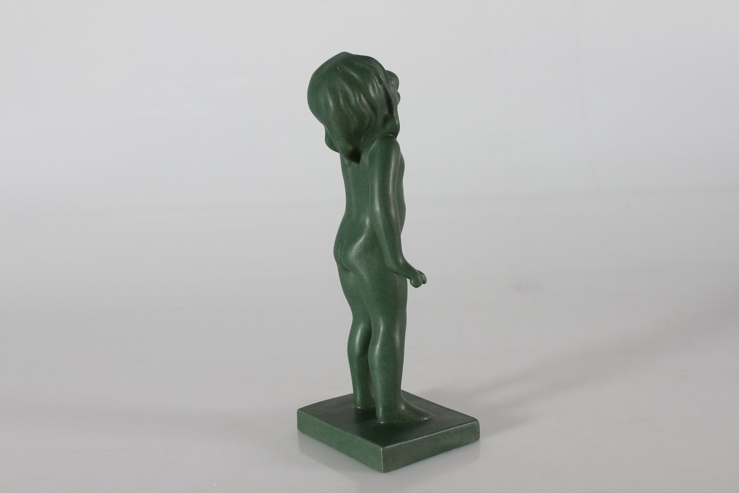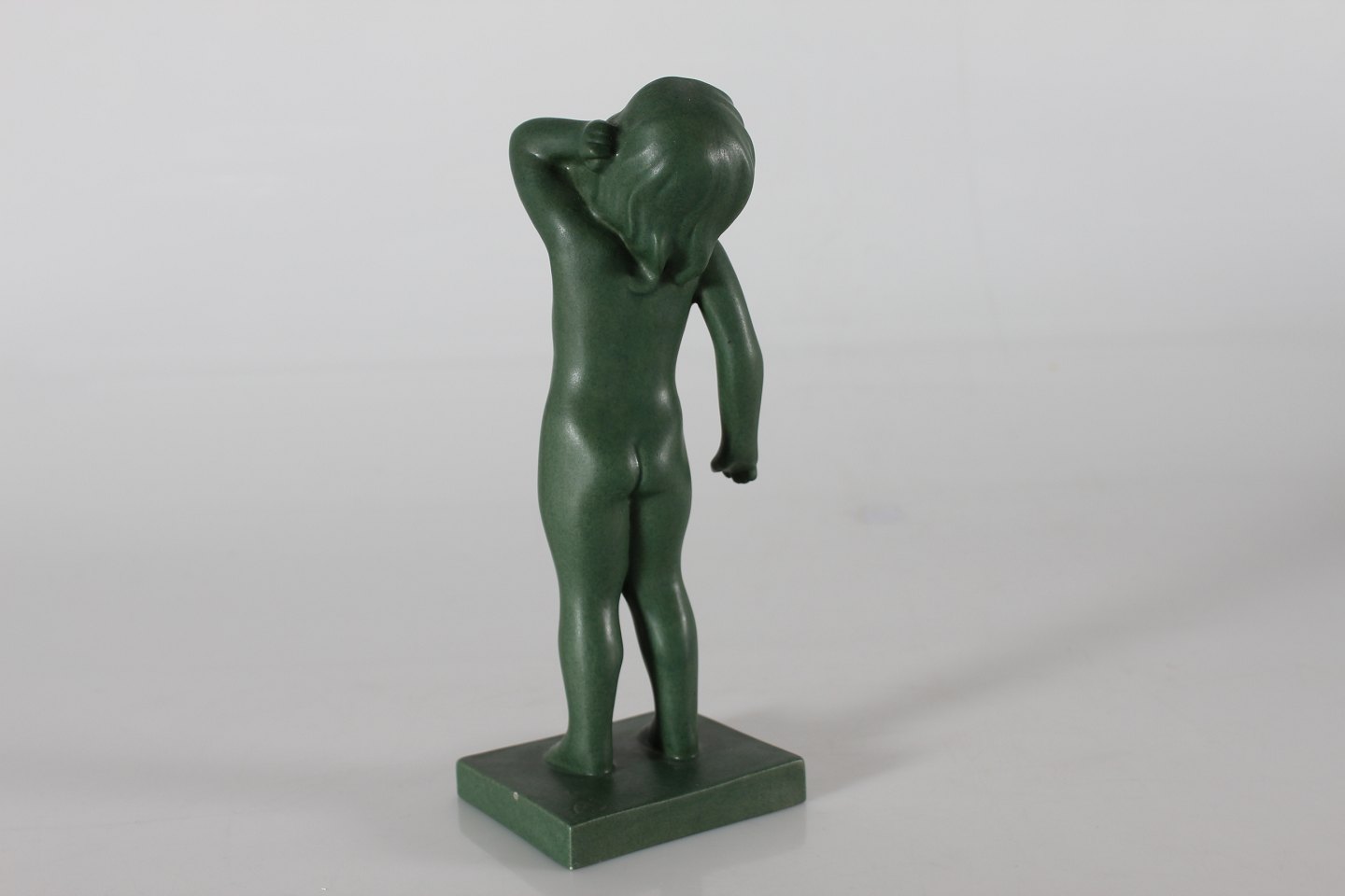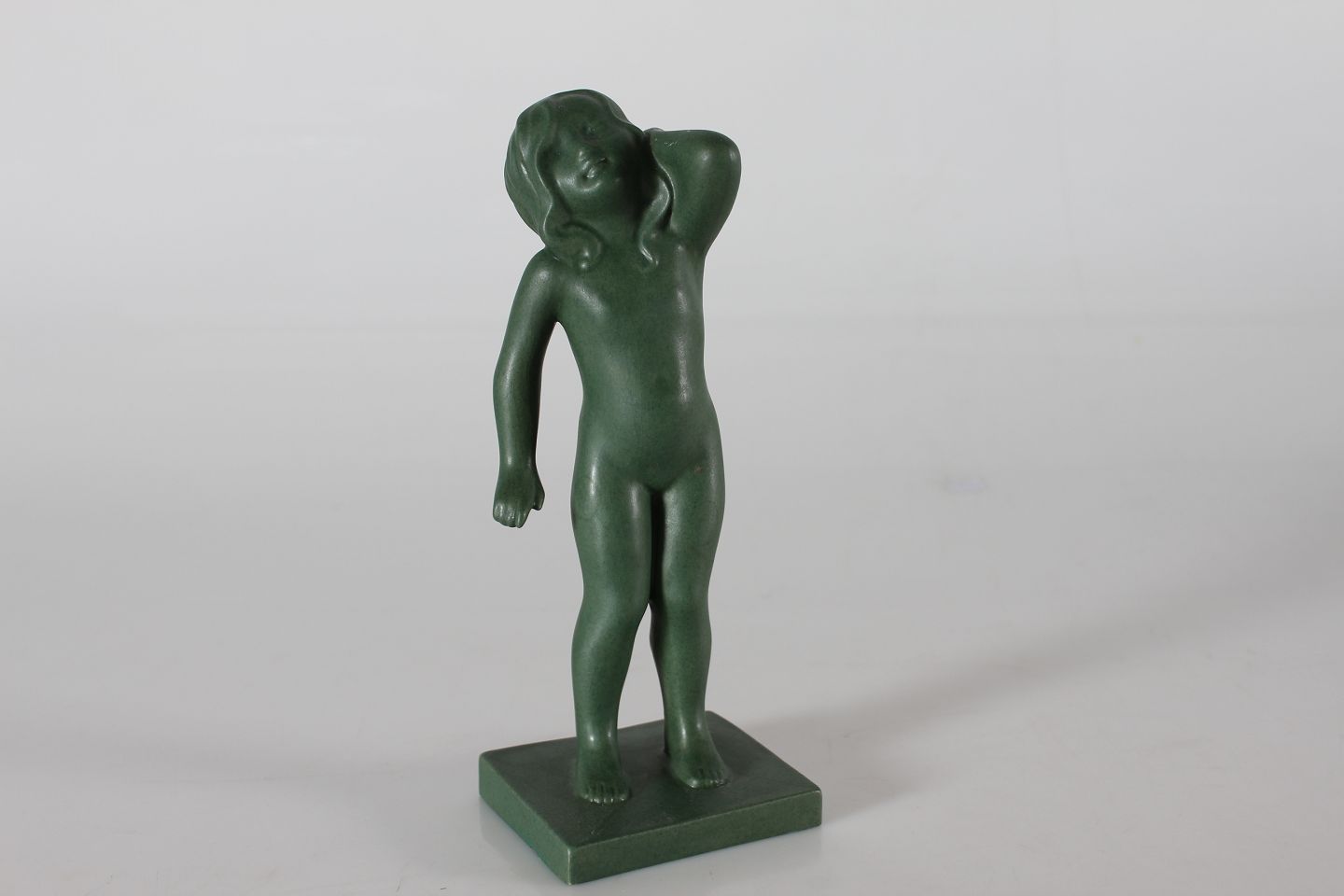 Ipsens Enke Figur "Morgengry/Opvågnen" nr. 916 formgjort af Arne Bang Fremstillet i keramik dekoreret med jadegrøn glasur Højde 22 cm Fin stand - se foto af få ganske små afslag