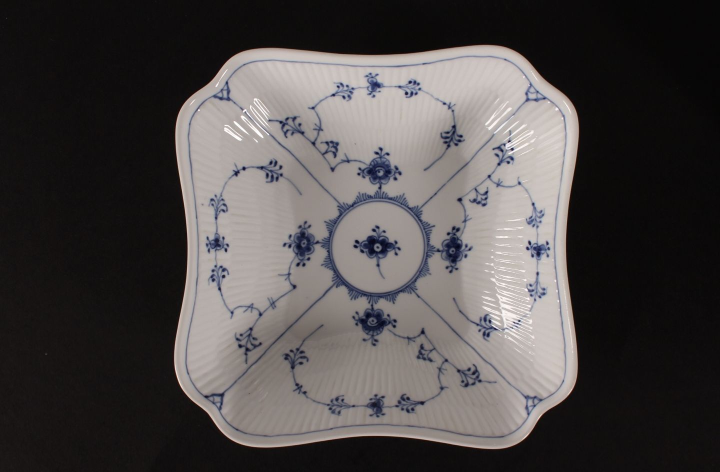 Royal Copenhagen Musselmalet Riflet Firkantet kartoffelskål med indtrukne hjørner nr. 1/26 og nr. 1/578 Størrelse 20 x 20 cm Fin fejlfri 2. sortering