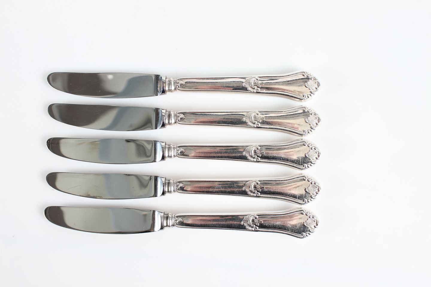 Rosenholm sølvbestik Frokostknive Fremstillet af 3 tårnet sølv Længde 20 cm Fin stand uden monogram