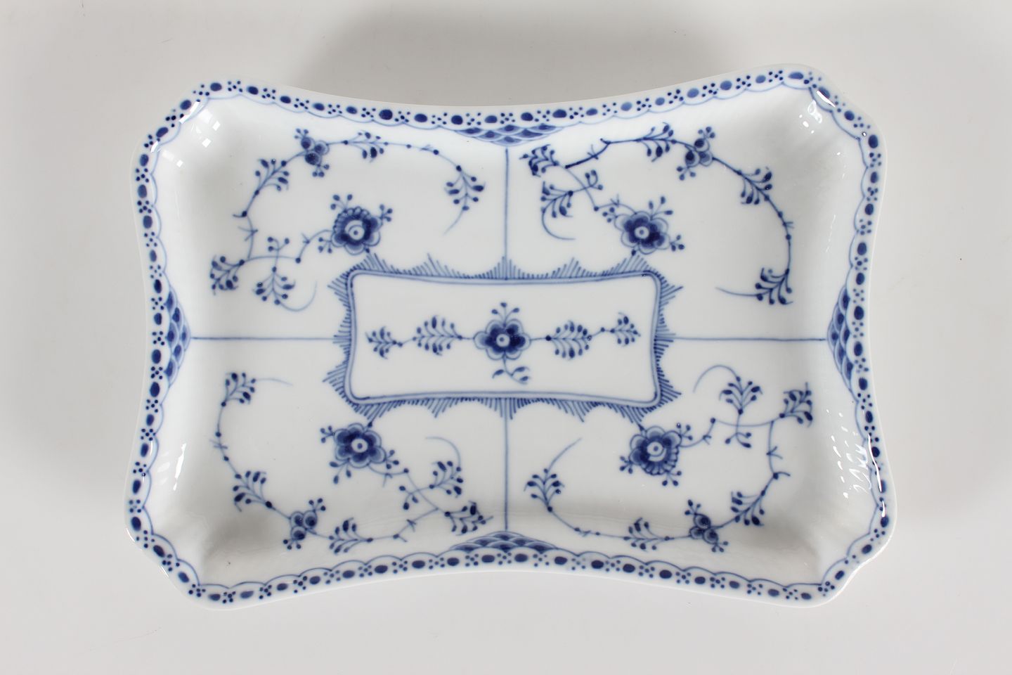 Royal Copenhagen Musselmalet Halvblonde Antik serverings- og sukker/flødebakke evt. til sushi nr. 1/716 Med stempel fra perioden 1894-1922 Længde 22 cm Bredde 15 cm Fin fejlfri 1. sortering fin