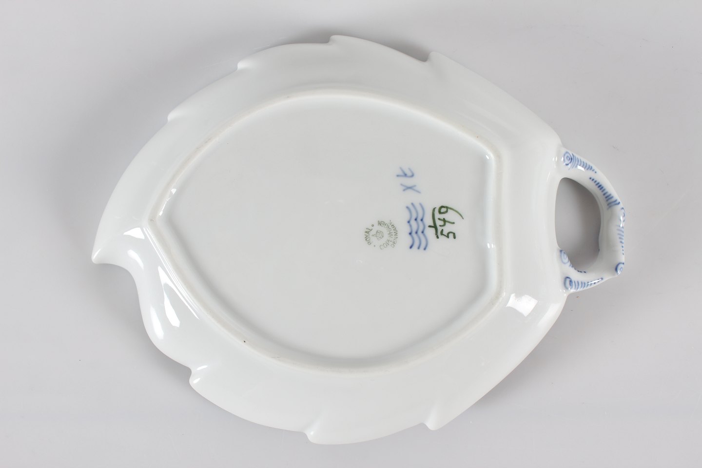 Royal Copenhagen Musselmalet Halvblonde Bladformet serveringsfad nr. 1/549 med stempel fra perioden 1923-34 Længde 26,5 cm Bredde 20 cm 1. sortering fin stand uden skår