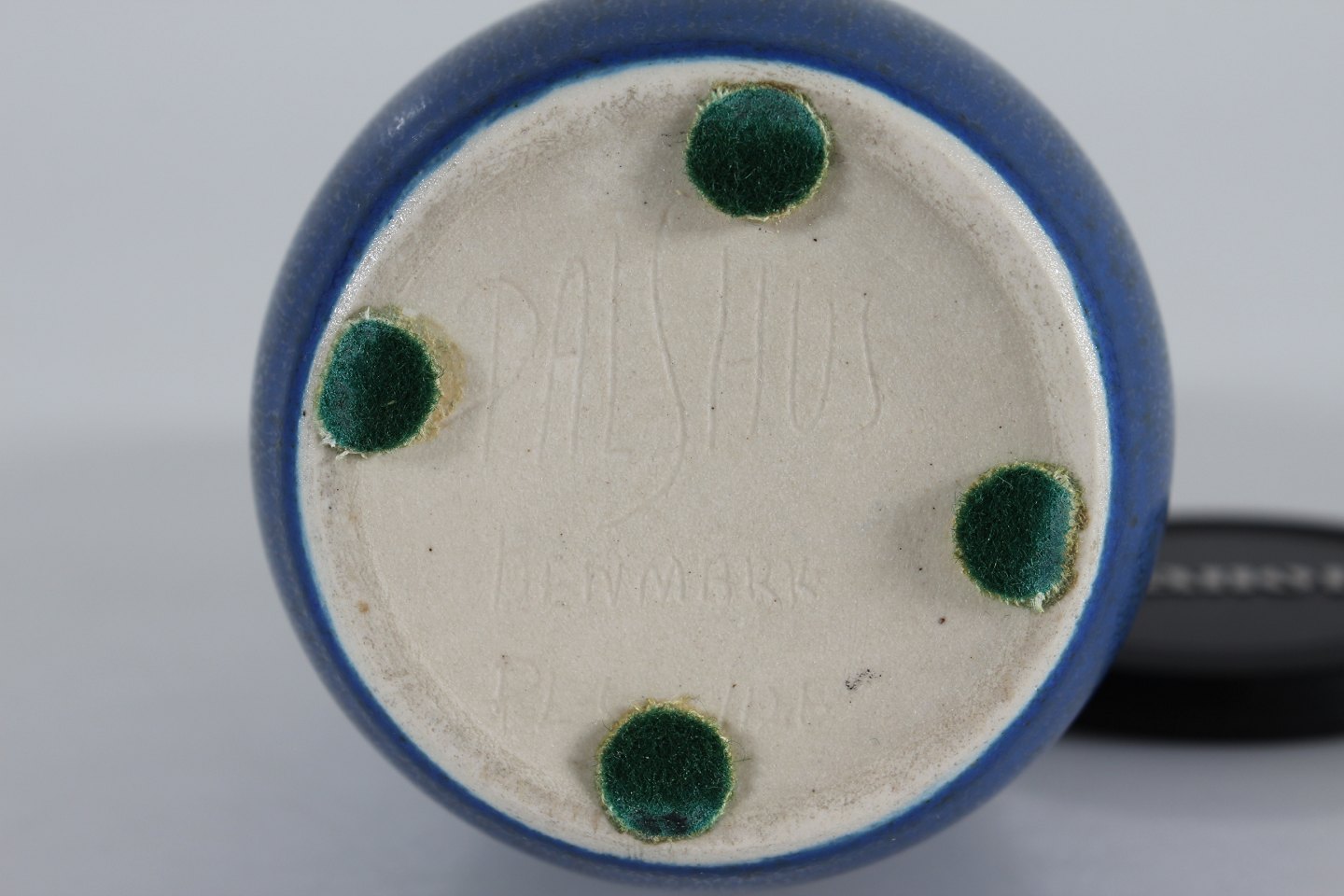 Palshus Keramik Slank vase med koboltblå harepels glasur model nr. 1126 Højde 18 cm Diameter 7 cm Sign: PLS for Per Linneman-Schmidt + Palshus - Denmark Fin fejlfri stand uden skår eller rep.