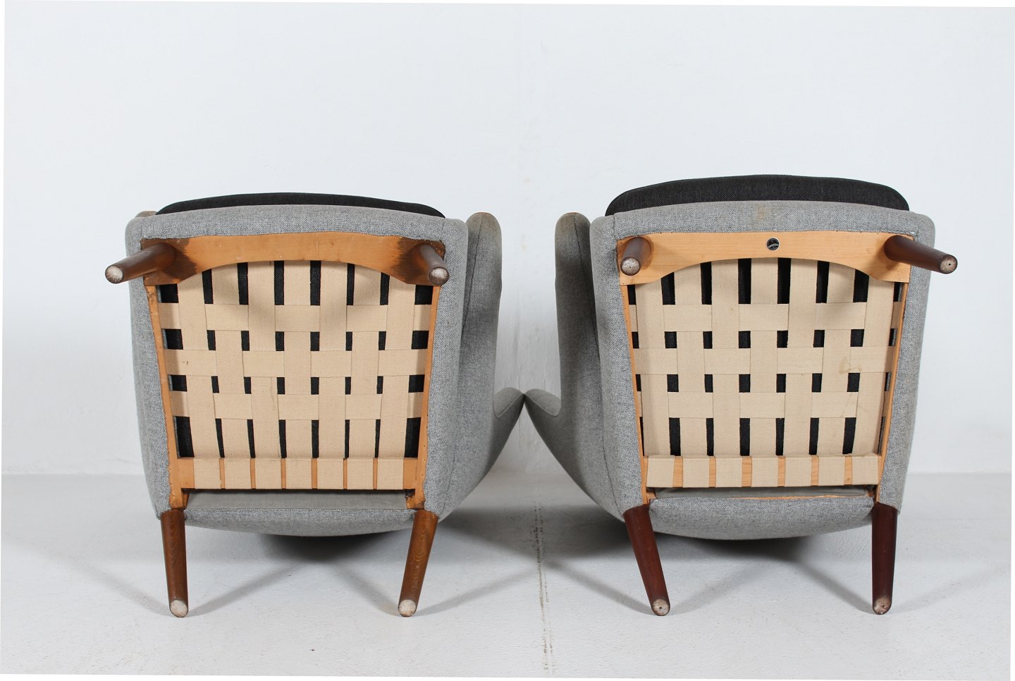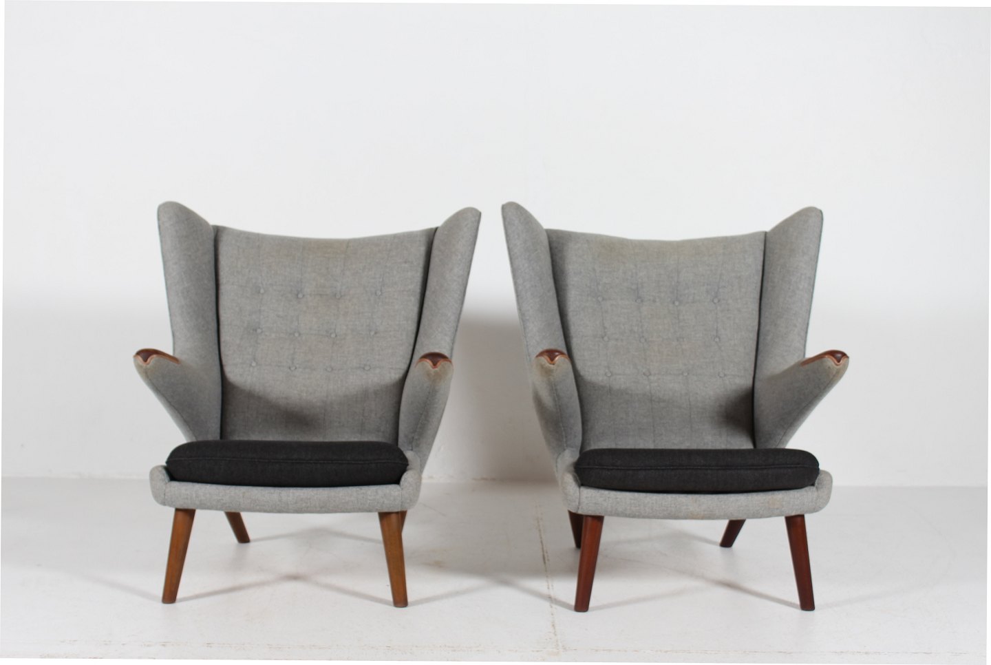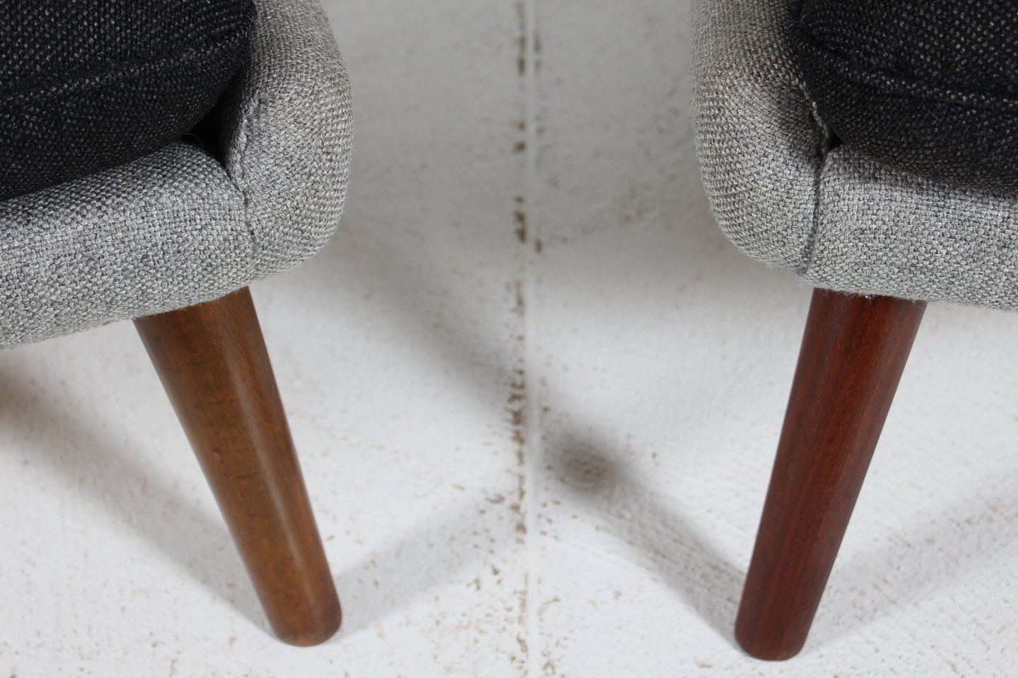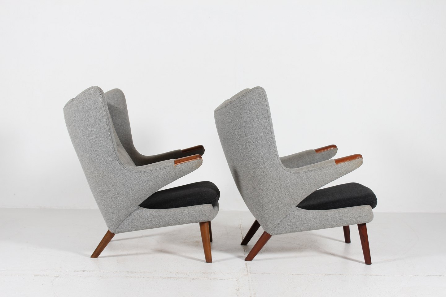Bamsestol AP 19 betrukket med lys og mørk grå uld,